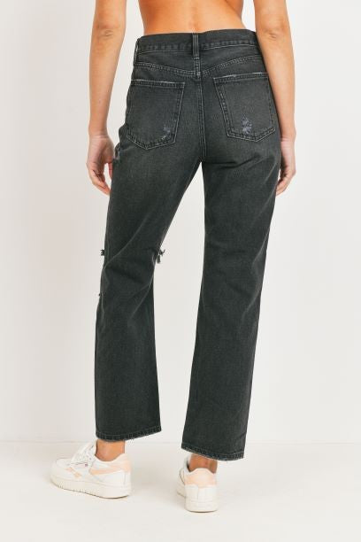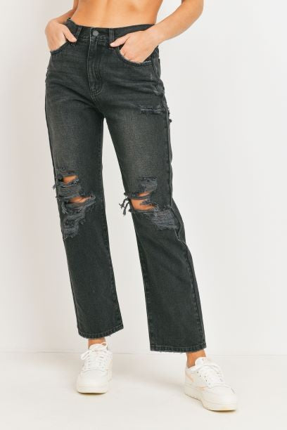 - High Rise, Full Length Distressed Straight Leg Dad Jeans